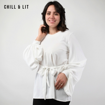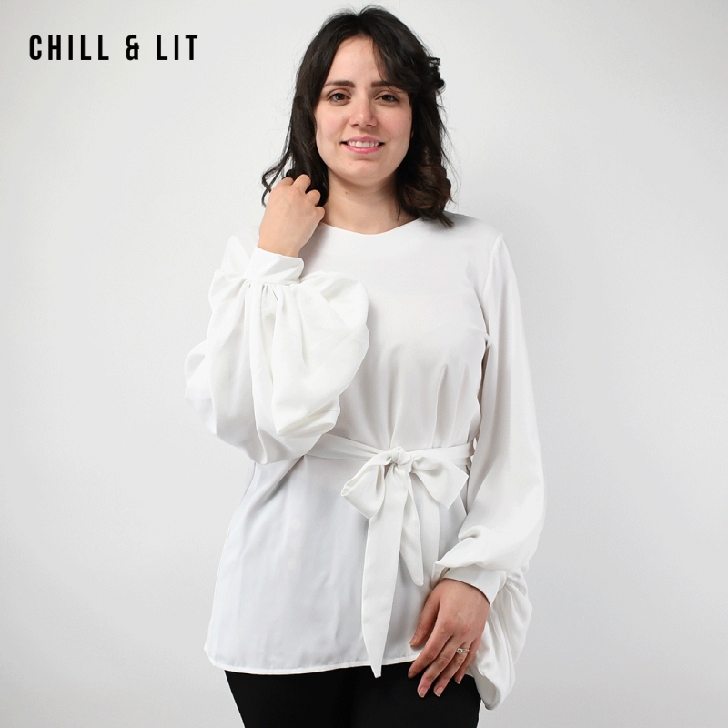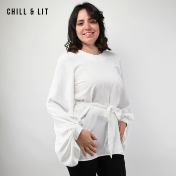 Chemise Longue pour Femme Avec Manches longues Bouffantes . Très Tendance en Ce Moment. Le Mannequin Porte La Taille 38.