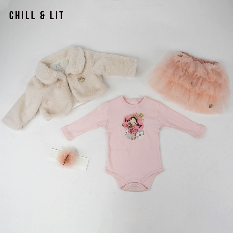 Ensemble Fillette 4 Pièces Veste en Fourrure + Grenouillère + Jupe + Bandana de Style Chic Confectionné Dans Une Matière Douce et Agréable à Porter, Il Offre un Confort Optimal Tout En Restant élégant. L'ensemble sur La Photo est La taille 6mois.