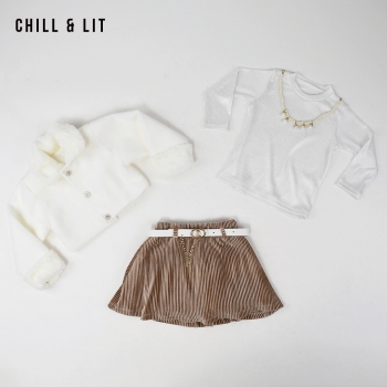 Ensemble Fillette 3 Pièces Veste + Collier +Pull à Manches Longues + Jupe en Velours avec Ceinture Hyper Tendance en Ligne Maintenant sur Chill&Lit. L'ensemble sur La Photo est La taille 2Ans.