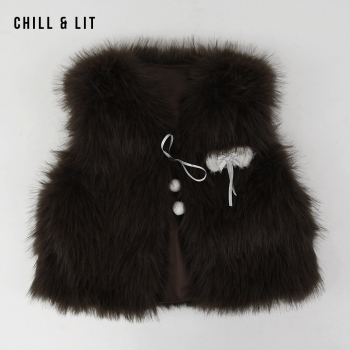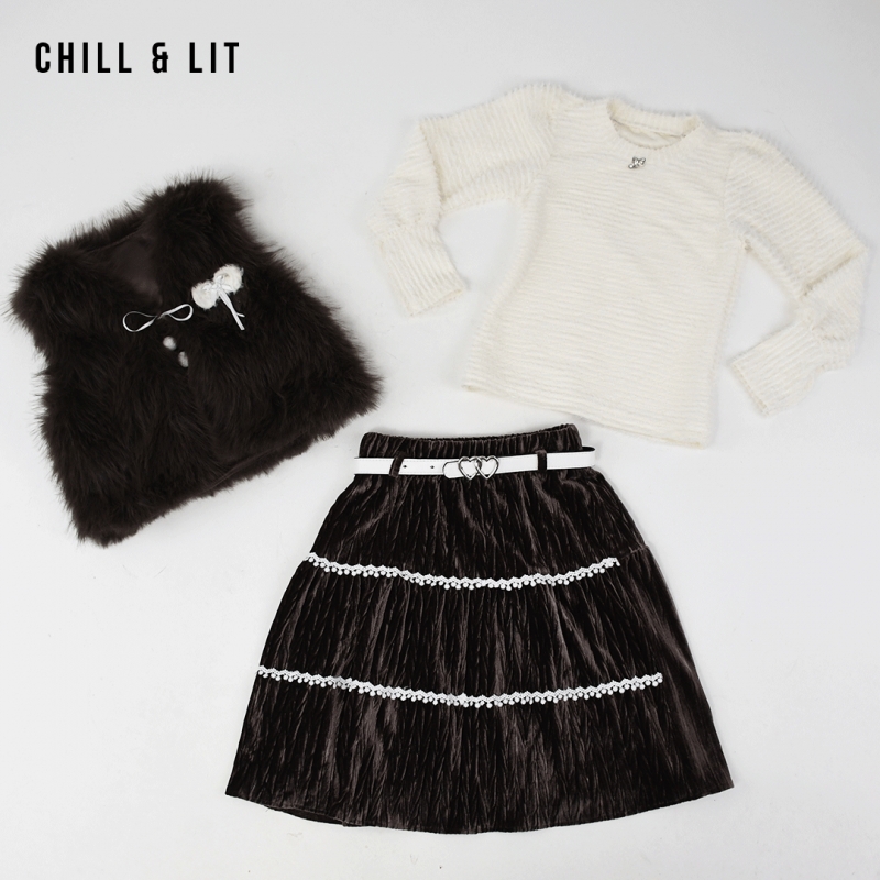 Ensemble Fillette 3 Pièces Veste sans Manches en Fourrure + Pull à Manches Longues + Jupe en Velours avec Ceinture en Ligne sur Chill&Lit. L'ensemble sur La Photo est La taille 6Ans.