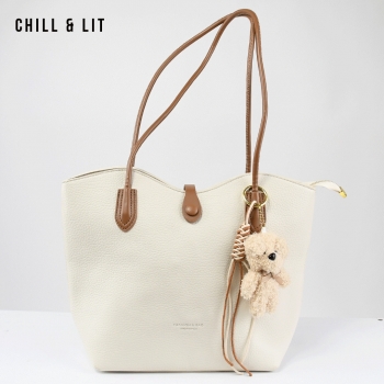 Sac à Main en Cuir se porte à la main ou sur les épaules par des Anses en Cuir + Porte-clés Ours . Hyper Tendance en ce Moment.