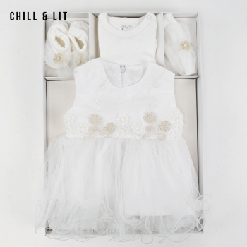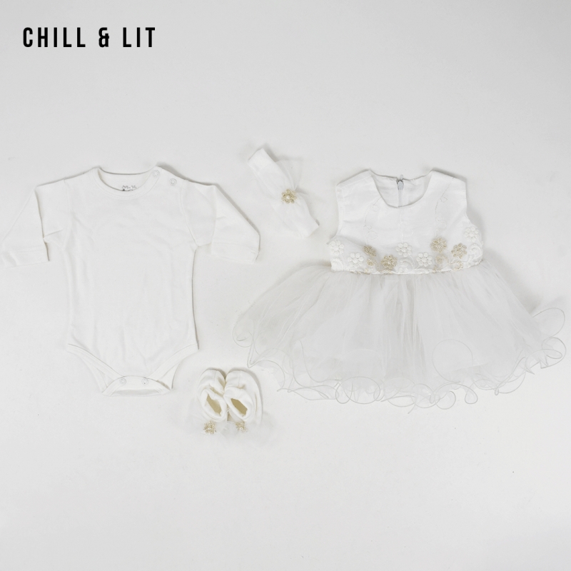 Ensemble Fillette 4 Pièces Robe sans Manches + grenouillère Bébé + Bandana +Bandana + Chaussons de Style Chic Confectionné Dans Une Matière Douce et Agréable à Porter, Il Offre un Confort Optimal Tout En Restant élégant. L'ensemble sur La Photo est La taille 3Mois.
