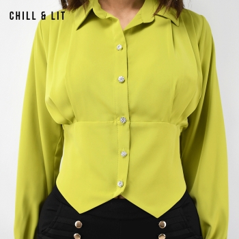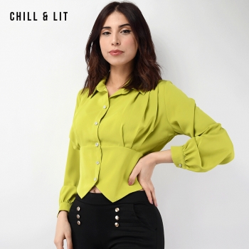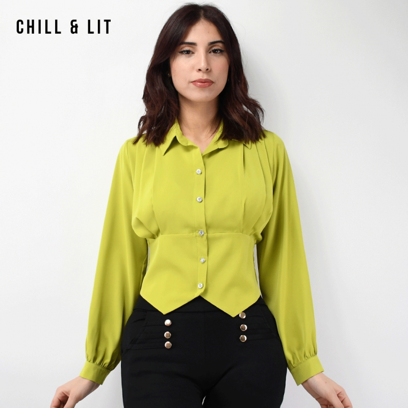 Chemise Courte pour Femme Avec Manches longues. Très Tendance en Ce Moment. Le Mannequin Porte La Taille 4. Le Mannequin Mesure 1m70.
