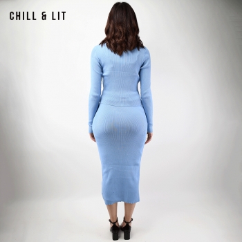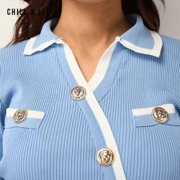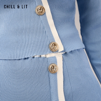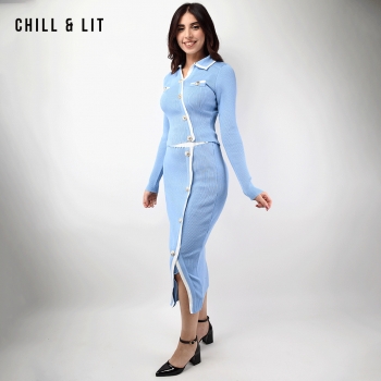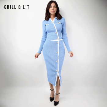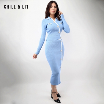 Ensemble en Laine pour Femme de Style Old Money. Top Ajustable Avec Des Boutons Inoxydables, Col Chemise + Jupe Avec Patte à Fente à Côté Devant et Taille Ajustable par Élastique Super Tendance cet Hiver. Le Mannequin Porte La Taille Standard et Mesure 1m78.
