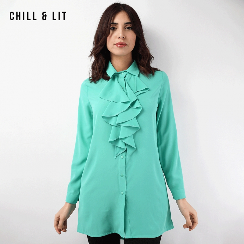Chemise Longue pour Femme Avec Manches longues. Très Tendance en Ce Moment. Le Mannequin Porte La Taille 38. Le Mannequin Mesure 1m78.