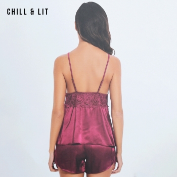 Ensemble de Nuit Deux Pièces élégant et Confortable, Composé d’un Pull à fines bretelles et d’un short assorti. Confectionné dans une matière satinée douce et légère, il offre une Sensation Agréable sur la Peau tout en assurant un Tombé Fluide
