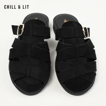 Mules Plates pour Femme En Daim Avec Brides Réglables. Hyper Confortable Semelle de propreté en cuir et Super Tendances Cet Eté. Hauteur Semelle 2.5cm. Pointure sur la Photo: 37.