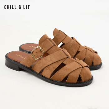 Mules Plates pour Femme En Daim Avec Brides Réglables. Hyper Confortable Semelle de propreté en cuir et Super Tendances Cet Eté. Hauteur Semelle 2.5cm. Pointure sur la Photo: 37.