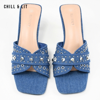 Mules à Talon pour femme, Bout Carré, Hauteur de Talon 7cm. Hyper Tendances . Pointure sur la Photo:36.