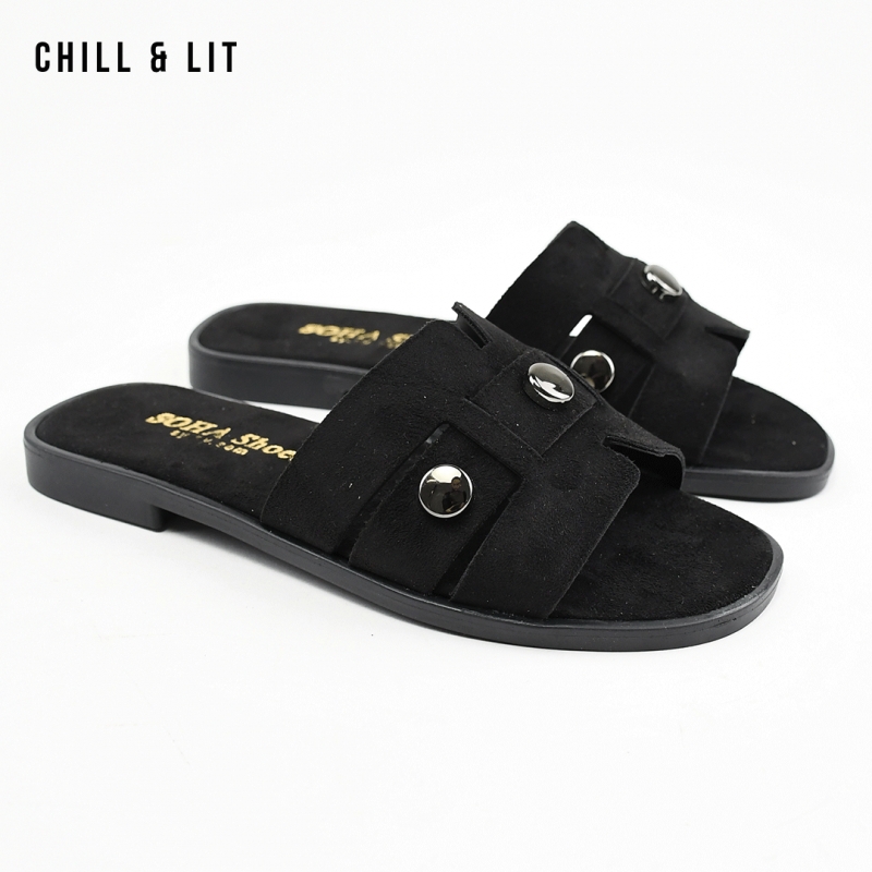 Mules Plates pour Femme en Daim. Hauteur Semelle 2cm. Hyper Confortable et Super Tendances . Pointure sur la Photo: 36.