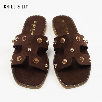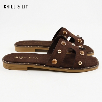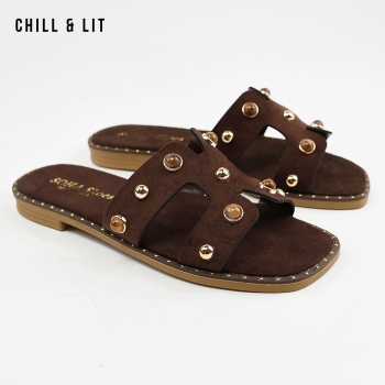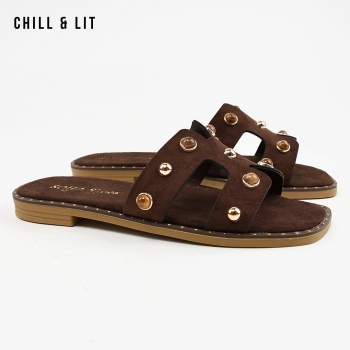 Mules Plates pour Femme en Daim avec Accessoires. Hauteur Semelle 2cm. Hyper Confortable et Super Tendances . Pointure sur la Photo: 37.