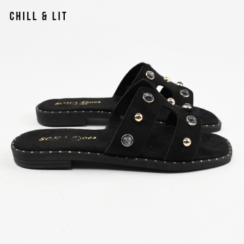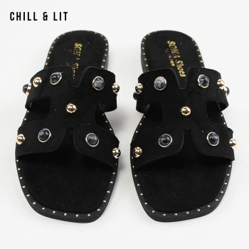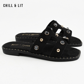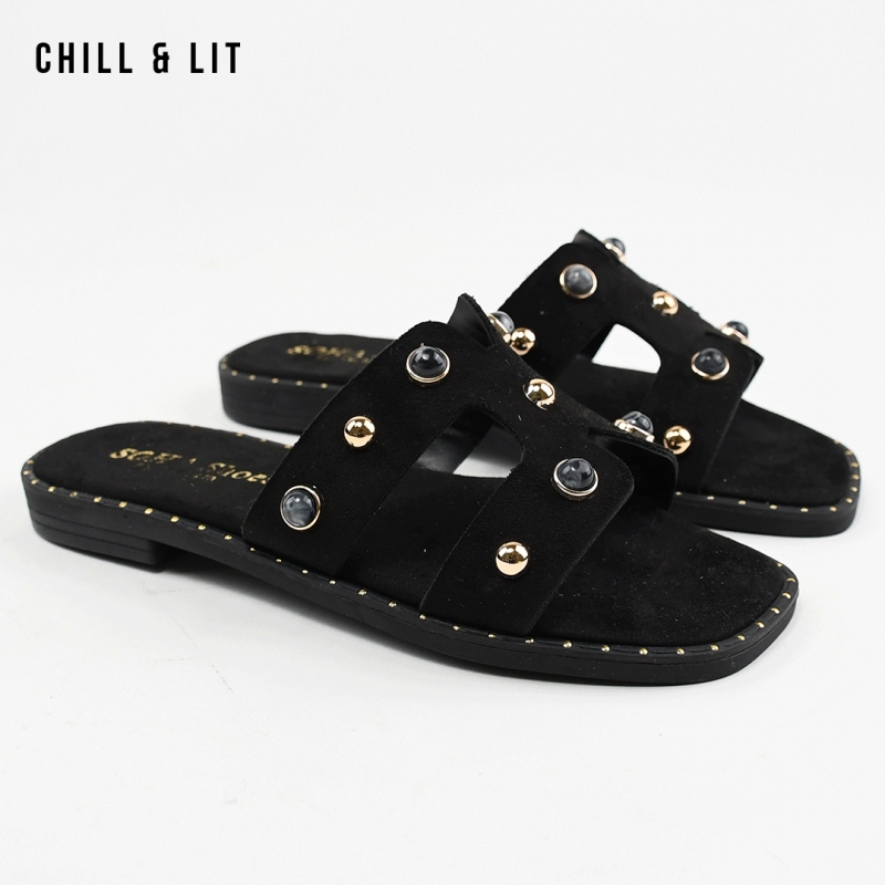 Mules Plates pour Femme en Daim avec Accessoires. Hauteur Semelle 2cm. Hyper Confortable et Super Tendances . Pointure sur la Photo: 37.