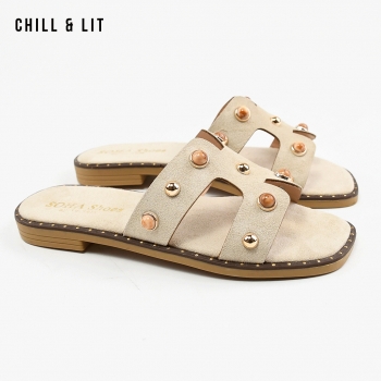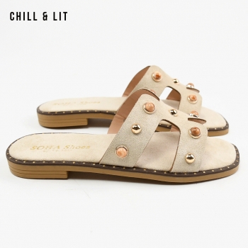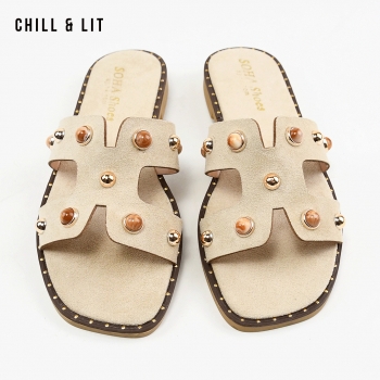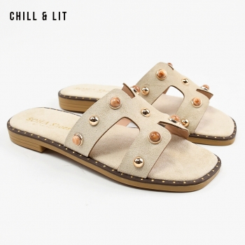 Mules Plates pour Femme en Daim avec Accessoires. Hauteur Semelle 2cm. Hyper Confortable et Super Tendances . Pointure sur la Photo: 37.