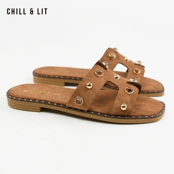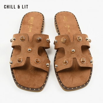 Mules Plates pour Femme en Daim avec Accessoires. Hauteur Semelle 2cm. Hyper Confortable et Super Tendances . Pointure sur la Photo: 37.