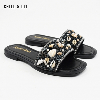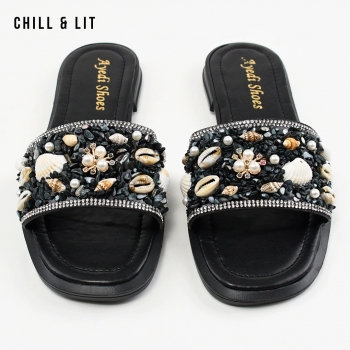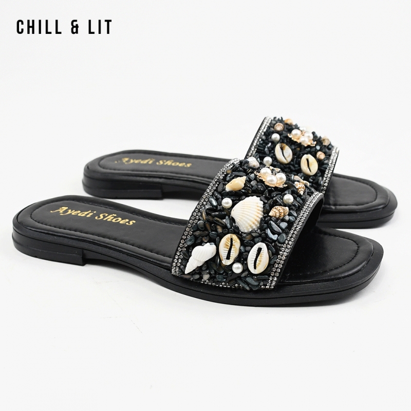 Mules Plates pour Femme avec Accessoires. Hauteur Semelle 2cm. Hyper Confortable et Super Tendances . Pointure sur la Photo: 36.