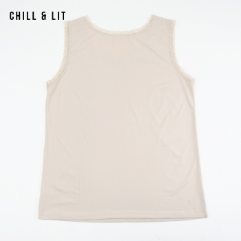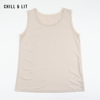 Débardeur Femme Sans manches au Design raffiné. Confectionné dans une Matière douce et légère, il Offre un confort Optimal tout au long de la Journée. Sa Coupe Fluide met en valeur la silhouette sans la contraindre. Le Détail en dentelle délicate autour de l’encolure et des manches Apporte une touche de Romantisme et d’élégance.