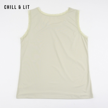 Débardeur Femme Sans manches au Design raffiné. Confectionné dans une Matière douce et légère, il Offre un confort Optimal tout au long de la Journée. Sa Coupe Fluide met en valeur la silhouette sans la contraindre. Le Détail en dentelle délicate autour de l’encolure et des manches Apporte une touche de Romantisme et d’élégance.