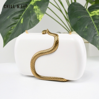 Sac de Soirée pour Femme, Sublimé par un Serpent Sculptural. Compact et élégant, avec Chaîne fine, il Apporte une touche Glamour et Originale à toutes tes Tenues.