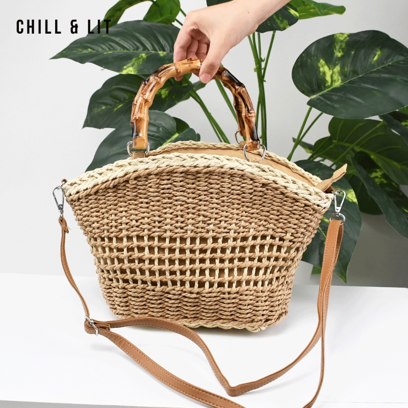 Couffin artisanal pour femme fabriqué en papier, avec Bandoulières. Se Porte à la Main ou sur les épaules. Hyper Tendance en ce Moment.