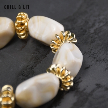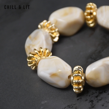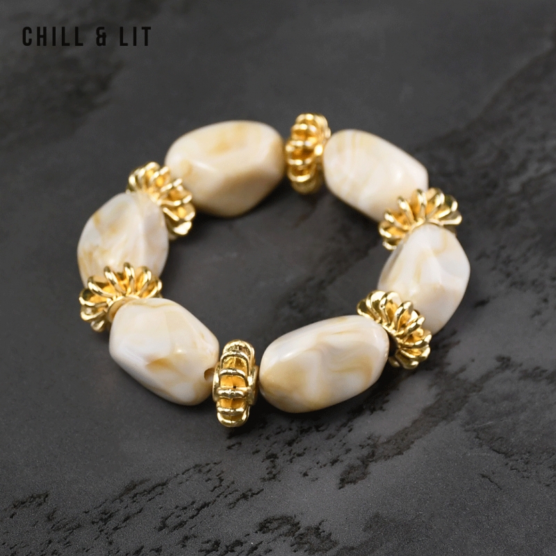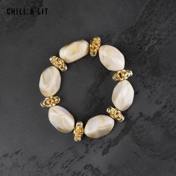 Bracelet élégant Composé de Perles Brillantes avec de Perles Dorées en Séparation, avec un fil élastiqué. Il apporte une Touche Discrète et Lumineuse à toutes vos tenues.