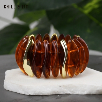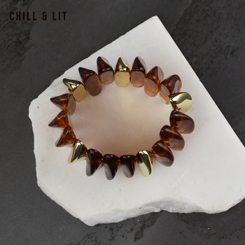 Bracelet élégant Composé de Perles Plates Brillantes avec de Perles Dorées en Séparation, avec un fil élastiqué. Il apporte une Touche Discrète et Lumineuse à toutes vos tenues.