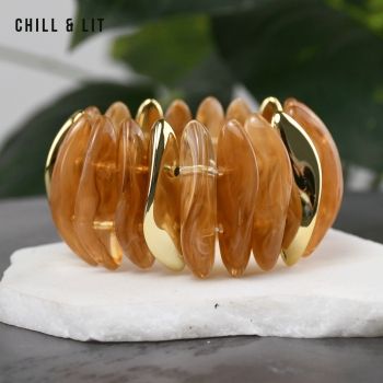 Bracelet élégant Composé de Perles Plates Brillantes avec de Perles Dorées en Séparation, avec un fil élastiqué. Il apporte une Touche Discrète et Lumineuse à toutes vos tenues.