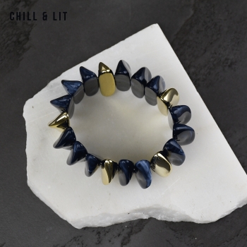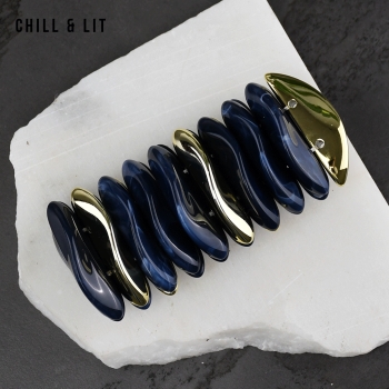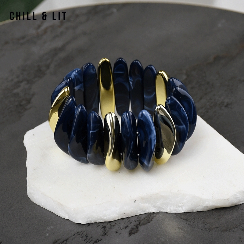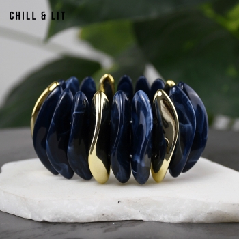 Bracelet élégant Composé de Perles Plates Brillantes avec de Perles Dorées en Séparation, avec un fil élastiqué. Il apporte une Touche Discrète et Lumineuse à toutes vos tenues.
