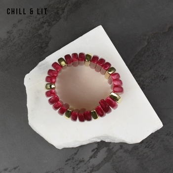 Bracelet élégant Composé de Perles Brillantes avec de Perles Dorées en Séparation, avec un fil élastiqué. Il apporte une Touche Discrète et Lumineuse à toutes vos tenues.