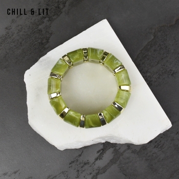 Bracelet élégant Composé de Perles Brillantes avec de Perles Dorées en Séparation, avec un fil élastiqué. Il apporte une Touche Discrète et Lumineuse à toutes vos tenues.