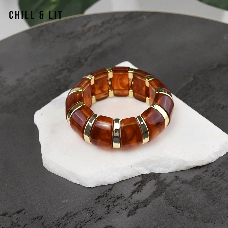 Bracelet élégant Composé de Perles Brillantes avec de Perles Dorées en Séparation, avec un fil élastiqué. Il apporte une Touche Discrète et Lumineuse à toutes vos tenues.