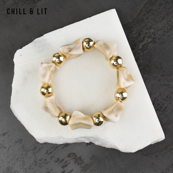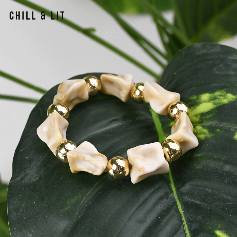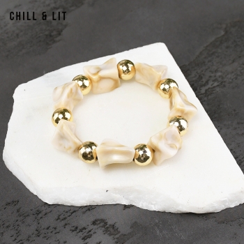 Bracelet élégant Composé de Perles Brillantes avec de Perles Dorées en Séparation, avec un fil élastiqué. Il apporte une Touche Discrète et Lumineuse à toutes vos tenues.