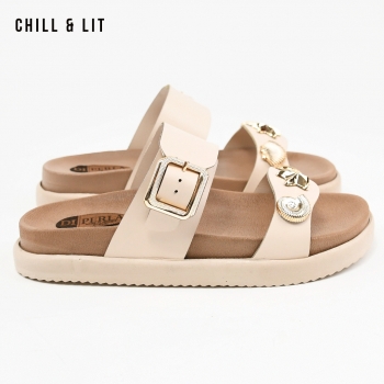 Mules Plates pour Femme avec Accessoires, Bride Réglable. Hyper Confortable Semelle de propreté en cuir et Super Tendances Cet Eté. Hauteur Semelle 3.5cm. Pointure sur la Photo: 37.