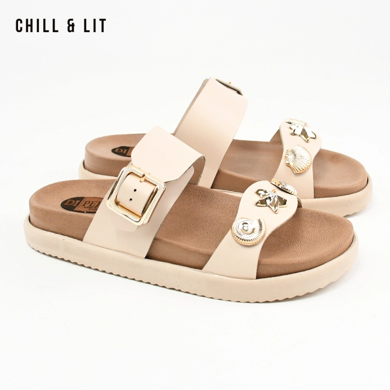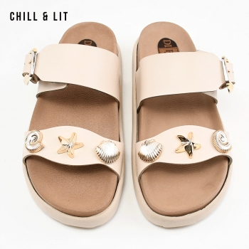 Mules Plates pour Femme avec Accessoires, Bride Réglable. Hyper Confortable Semelle de propreté en cuir et Super Tendances Cet Eté. Hauteur Semelle 3.5cm. Pointure sur la Photo: 37.