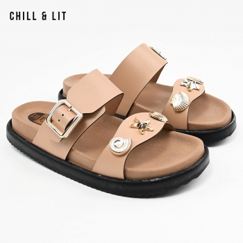 Mules Plates pour Femme avec Accessoires, Bride Réglable. Hyper Confortable Semelle de propreté en cuir et Super Tendances Cet Eté. Hauteur Semelle 3.5cm. Pointure sur la Photo: 37.