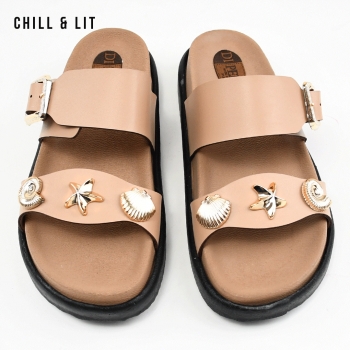 Mules Plates pour Femme avec Accessoires, Bride Réglable. Hyper Confortable Semelle de propreté en cuir et Super Tendances Cet Eté. Hauteur Semelle 3.5cm. Pointure sur la Photo: 37.