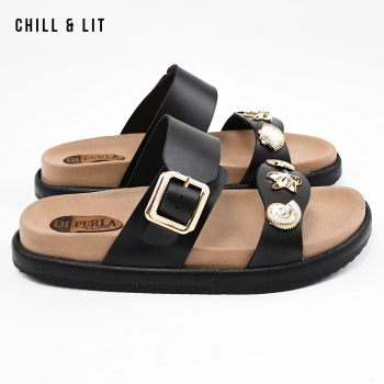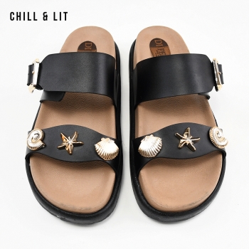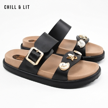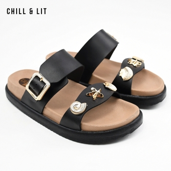 Mules Plates pour Femme avec Accessoires, Bride Réglable. Hyper Confortable Semelle de propreté en cuir et Super Tendances Cet Eté. Hauteur Semelle 3.5cm. Pointure sur la Photo: 37.
