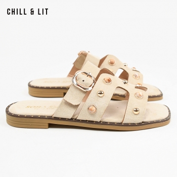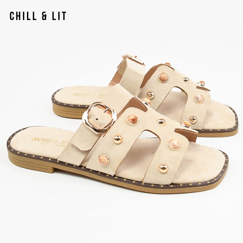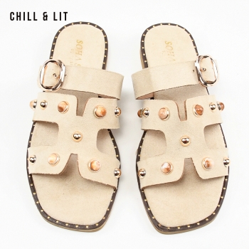 Mules Plates pour Femme avec Bride Réglable . Hyper Confortable Semelle de propreté en cuir et Super Tendances Cet Eté. Hauteur Semelle 2cm. Pointure sur la Photo: 37.