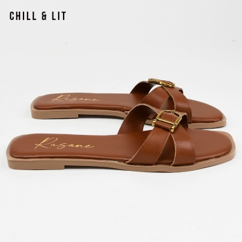 Mules Plates pour Femme Avec Brides Croisées. Bout Carré. Hyper Confortable Semelle de propreté en cuir et Super Tendances Cet Eté. Hauteur Semelle 2cm. Pointure sur la Photo: 36.