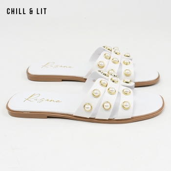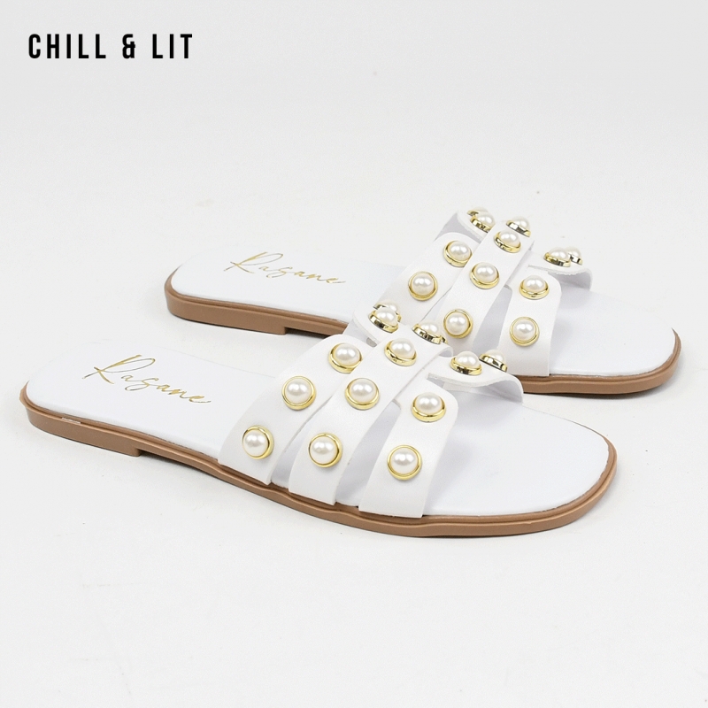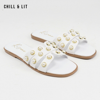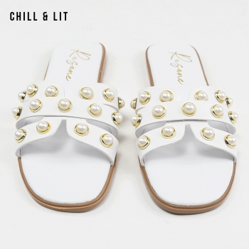 Mules Plates pour Femme Avec Perles. Hyper Confortable Semelle de propreté en cuir et Super Tendances Cet Eté. Hauteur Semelle 2cm. Pointure sur la Photo: 37.