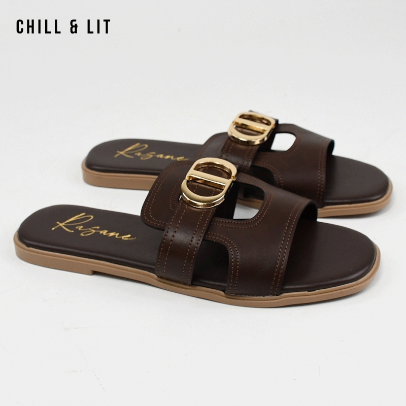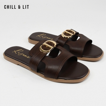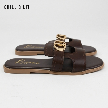 Mules Plates pour Femme Avec Accessoire Inoxydable. Hyper Confortable Semelle de propreté en cuir et Super Tendances Cet Eté. Hauteur Semelle 2cm. Pointure sur la Photo: 37.