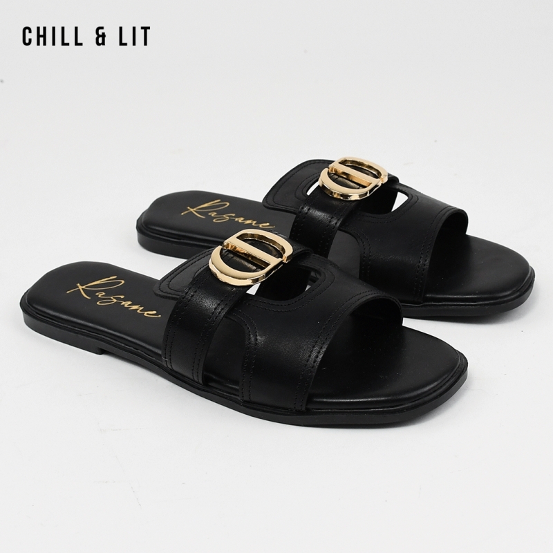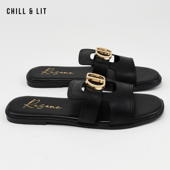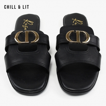 Mules Plates pour Femme Avec Accessoire Inoxydable. Hyper Confortable Semelle de propreté en cuir et Super Tendances Cet Eté. Hauteur Semelle 2cm. Pointure sur la Photo: 37.