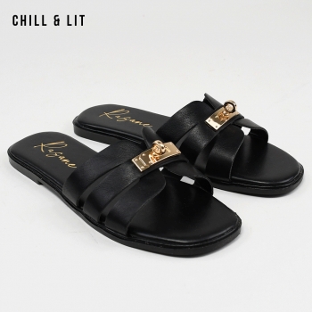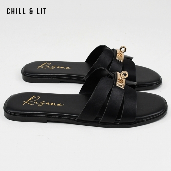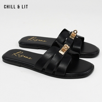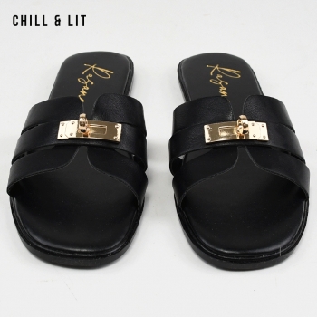 Mules Plates pour Femme Avec Accessoire Inoxydable. Hyper Confortable Semelle de propreté en cuir et Super Tendances Cet Eté. Pointure sur la Photo: 37.