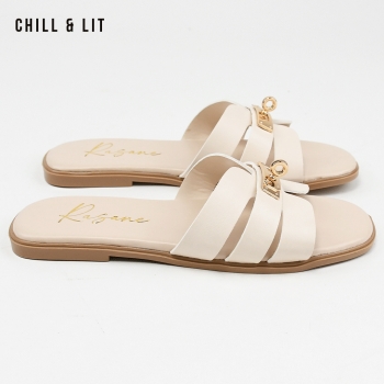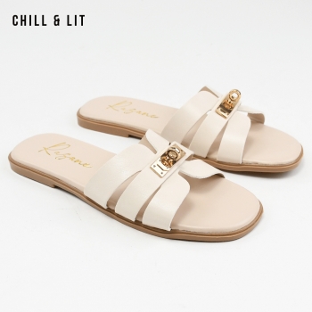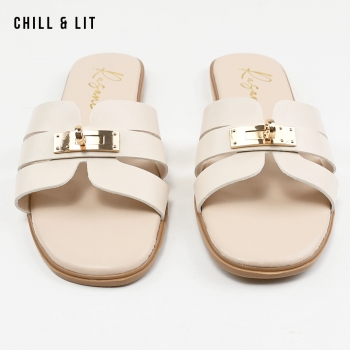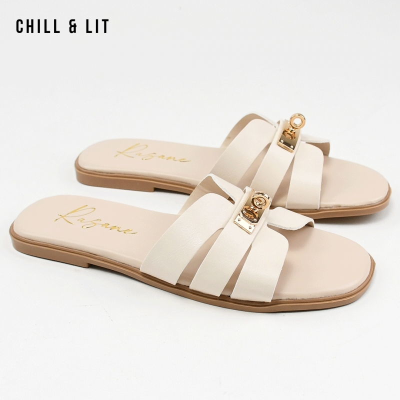 Mules Plates pour Femme Avec Accessoire Inoxydable. Hyper Confortable Semelle de propreté en cuir et Super Tendances Cet Eté. Pointure sur la Photo: 37.