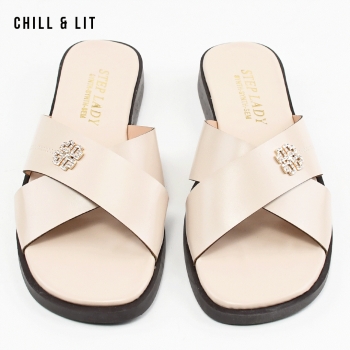 Mules pour Femme Avec Accessoire Inoxydable, Brides Croisées. Hauteur Semelle 3cm.  Hyper Confortable et Super Tendances . Pointure sur la Photo: 37.