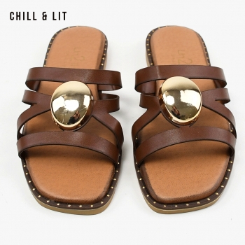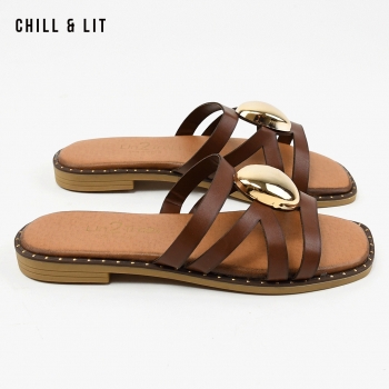 Mules pour Femme Avec Accessoire Inoxydable, Brides Croisées. Hauteur Semelle 3cm.  Hyper Confortable et Super Tendances . Pointure sur la Photo: 37.