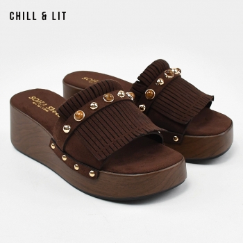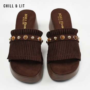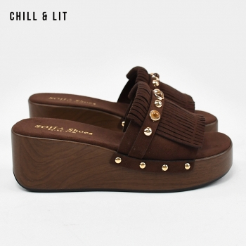 Mules Sabots pour Femme Avec Perles. Hauteur Semelle 6cm.  Hyper Confortable et Super Tendances . Pointure sur la Photo: 37.