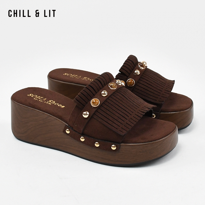 Mules Sabots pour Femme Avec Perles. Hauteur Semelle 6cm.  Hyper Confortable et Super Tendances . Pointure sur la Photo: 37.