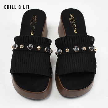 Mules Sabots pour Femme Avec Perles. Hauteur Semelle 6cm. Hyper Confortable et Super Tendances . Pointure sur la Photo: 37.