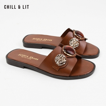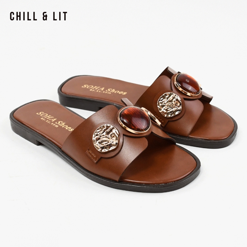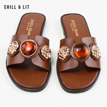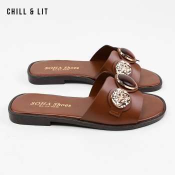 Mules Plates pour Femme Avec Accessoires Inoxydables. Hauteur Semelle 2cm. Hyper Confortable et Super Tendances . Pointure sur la Photo: 37.