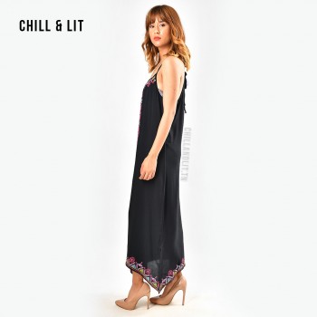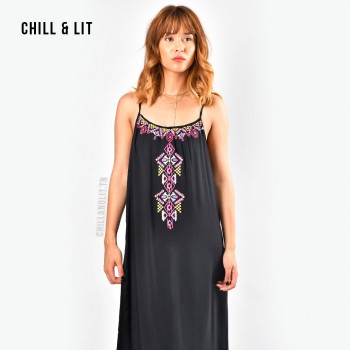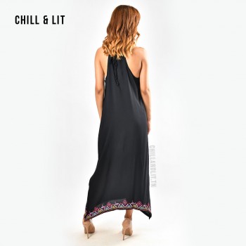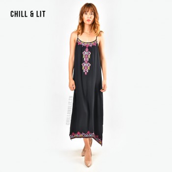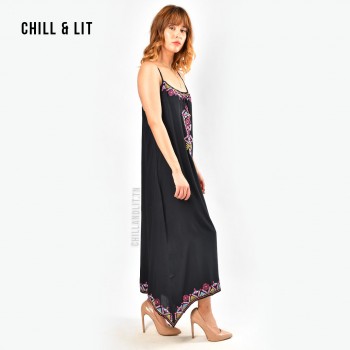 Robe Mi-Longue à Bretelles Très Mignone Pour l'été. Le Mannequin Porte La Taille 1 et Mesure 1m78.